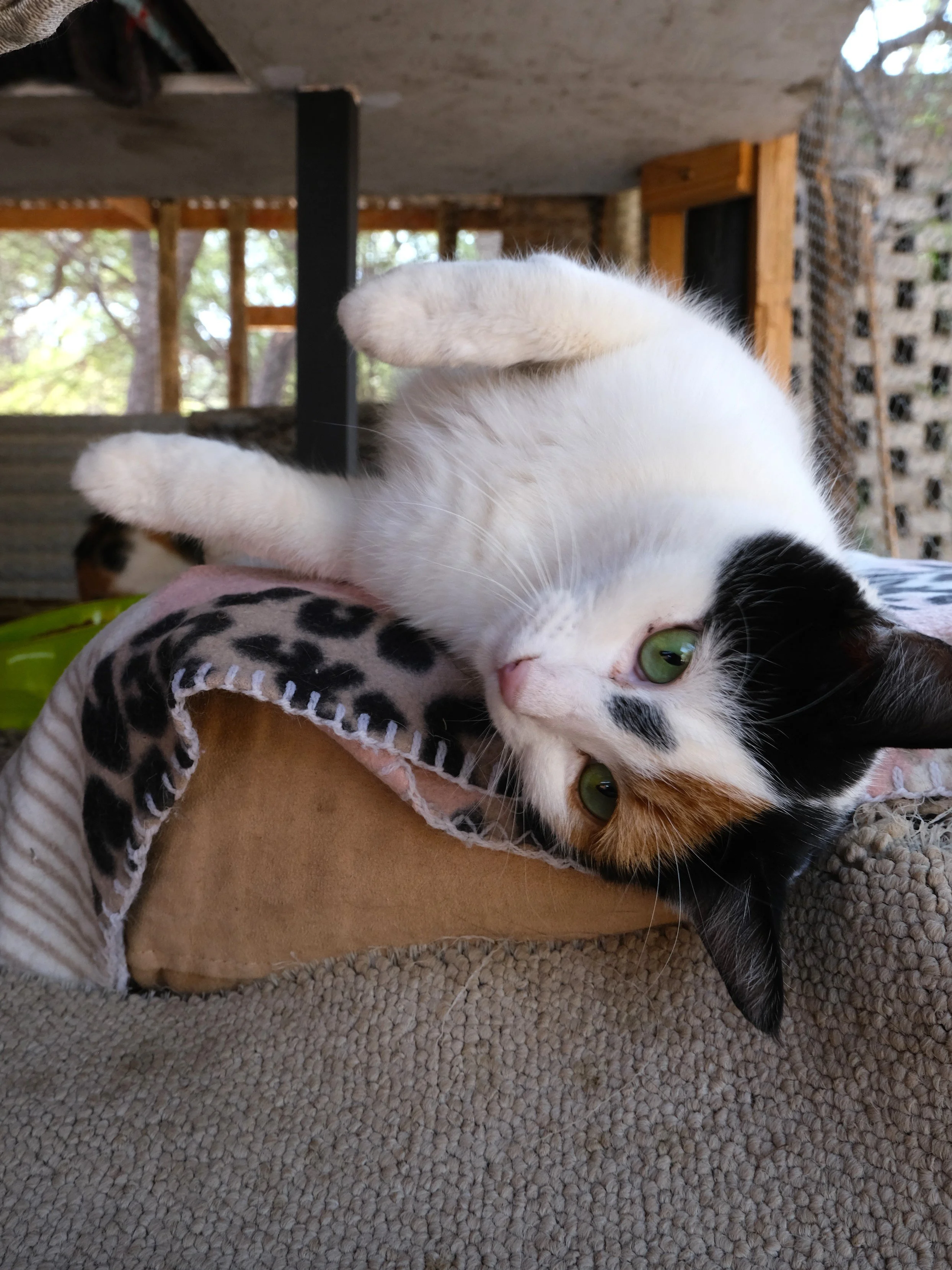 Tilly is a fabulous cat with a vibrant personality! This sassy lady loves lounging in the sun and reveling in the feel of sand beneath her paws. Despite her age, Tilly is as playful as a kitten at heart and always ready for fun and adventure.